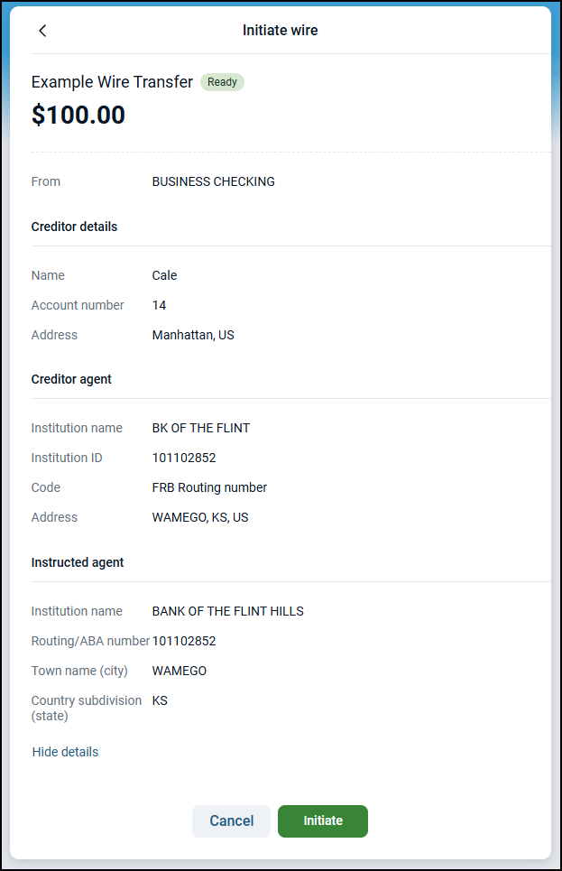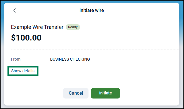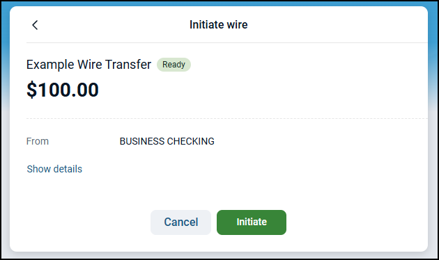 If the wire details are correct, they send the wire by selecting the Initiate button.