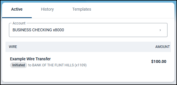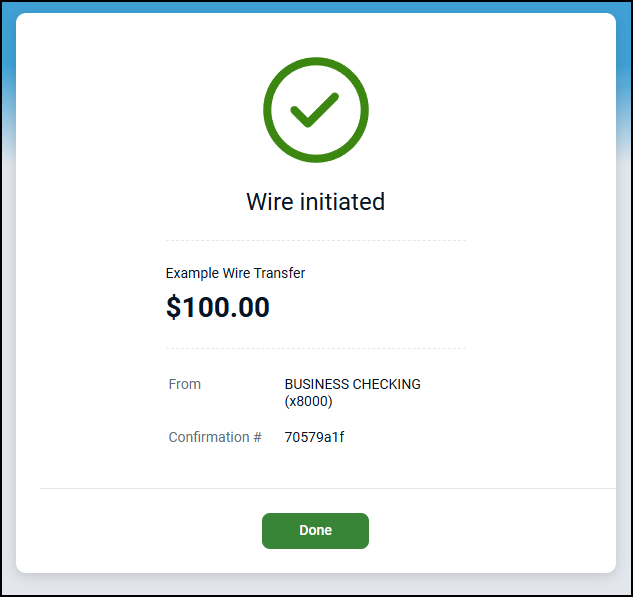 Once complete, a successfully initiated wire displays Initiated, and the process of transferring funds between institutions begins.