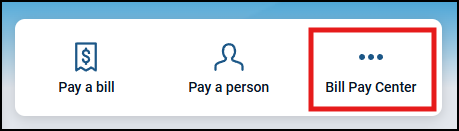 Click on the Bill Pay Center button with the 3 dots from the quick actions menu in the upper right.